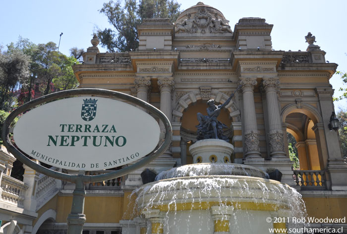 Photos of Terraza Neptuno (Neptune Terrace) on Cerro Santa Lucia in downtown Santiago, Chile.